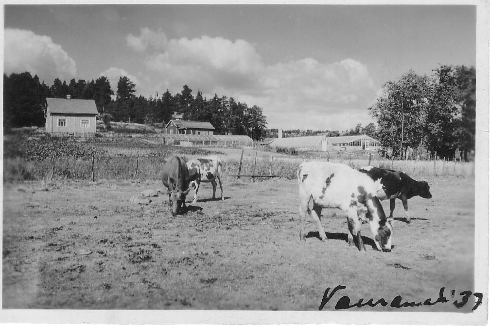 Kantatilan (Uusitupa) lehmät laiduntavat Vauramäen rantapalstalla vuonna 1937.
